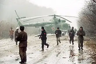 ![]() Helicóptero russo Mil Mi-8 derrubado por chechenos, perto de Grozny - dezembro de 1994. | |||