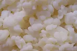 Os grãos de Kefir formam um aglomerado gelatinoso irregular, onde são encontradas bactérias ácido-lácticas, ácido-acéticas e leveduras imersas em uma matriz de proteínas e polissacarídeos. Os micro-organismos mais comumente isolados de grãos de kefir compreendem os gêneros Lactobacillus (L. brevis, L. casei, L. kefiri, L. acidophilus, L. plantarum, L. kefiranofaciens subsp. kefiranofaciens, L. kefiranofaciens subsp. kefirgranum, L. parakefir).[9]