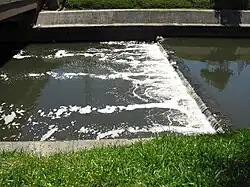 A poluição hídrica consiste em modificações de origem humana nas propriedades físicas e químicas da água capazes de provocar dano aos seres humanos e ou à vida selvagem, incluindo-se aqui tanto rios e lagos como os mananciais subterrâneos e o mar. Suas causas principais derivam do lixo e esgotos urbanos e de substâncias usadas na agricultura e indústria, que são lançados diretamente nas águas ou lá acabam parando levados pelas chuvas ou por infiltrações.[32] Acidentes com despejos de substâncias nocivas em geral têm um impacto limitado, mas às vezes desencadeiam efeitos de grandes proporções com reflexos em vários ambientes associados. É um exemplo o derramamento de lama tóxica ocorrido em 2015 no rio Doce pelo rompimento de uma barragem da mineradora Samarco, que provocou pelo menos 17 mortes e prejudicou severamente a biologia de todo o rio abaixo do ponto do acidente, além de destruir uma vila, gerar grandes prejuízos econômicos e sociais e contaminar uma grande área de oceano e praias além da sua foz, sendo considerado o maior desastre ambiental da história do país.[33][34] Também são consideradas formas de poluição a contaminação salina e a mineralização dos mananciais.[35] O crescimento acelerado da população humana, com o aumento na demanda de água para consumo e outras atividades, reduz os estoques disponíveis, aumentando o problema porque menores quantidades de líquido são menos capazes de diluir os contaminantes.[32][36][37]