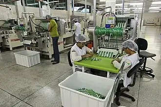 Em economia e automação industrial, produção é um processo que consiste na combinação dos fatores de produção com a finalidade de satisfazer necessidades humanas, em termos de bens ou serviços.[1]