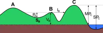 Todas as montanhas, excepto o Monte Everest, têm uma montanha de maior altura do que ela. Isto quer dizer que para qualquer outro monte tem de existir algum lugar tal que para passar desse monte a outro que seja mais alto, se perca a menor altitude possível. Esta simples observação, que já foi estudada pelo físico escocês James Clerk Maxwell, levou-o a pensar na existência de uma relação inequívoca entre cada um dos cumes da superfície terrestre e um ponto de sela (saddle). O aspecto mais complexo desta análise consiste em determinar qual é o trajeto de desnível mínimo que permita relacionar as duas montanhas.