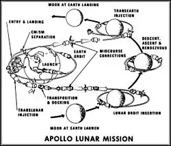 Havia, na época da definição do projeto, três possibilidades de voo para a Lua: uma baseada na ideia de um único e imenso foguete que iria decolar da Terra, pousar na Lua e retornar; outra baseada na ideia de rendez-vous (encontro em órbita) na órbita da Terra, em que o foguete encontraria um outro estágio em órbita da Terra; e, finalmente, o rendez-vous lunar, que significa que um pequeno módulo desceria ao solo da Lua e depois encontraria em órbita a nave de retorno. Esta última opção foi a escolhida pelos engenheiros da NASA para o projeto Apollo (veja figura descrevendo a missão Apollo).