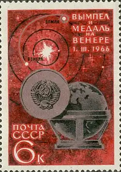 - A Venera 3 alcançou o planeta em 1 de março de 1965, mantendo contínuo contato radiofônico com a Terra, mas este contato foi perdido logo antes da entrada da sonda na atmosfera do planeta. A Venera 3 tornou-se o primeiro objeto humano a pousar em outro planeta - embora este pouso não tenha sido controlado. A sonda possuía um corpo cilíndrico com uma espécie de redoma no topo, com uma altura total de cerca de 2 m, e havia dois painéis solares laterais de dimensões relativamente pequenas. Uma antena grande (mais de 2 m de diâmetro), de alto ganho, era a responsável pela recepção dos sinais de controle, e uma antena linear longa transmitia os sinais à Terra. Os instrumentos científicos da nave incluíam um magnetômetro, detectores de íons, detectores de micrometeoritos e radiação cósmica. A redoma no topo da nave continha uma esfera pressurizada que continha as insígnias soviéticas, e era projetada para flutuar nos presumíveis oceanos de Vênus, após o pouso (a nave não continha retrofoguetes).