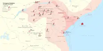 Embora a influência portuguesa tenha se expandido gradualmente, seu poder era limitado e exercido por meio de colonos e funcionários individuais aos quais foi concedida ampla autonomia. Os portugueses passaram a controlar grande parte do comércio costeiro dos árabes entre 1500 e 1700, estabelecendo fortalezas como Sofala, Quelimane e a Ilha de Moçambique, mas no interior sua presença era frágil e dependia de alianças locais.[12] Mas com a tomada árabe do Forte Jesus, na Ilha de Mombaça, em 1698, o controle costeiro passou temporariamente para mãos muçulmanas. Como resultado, o investimento ficou para trás, enquanto Lisboa concentrou-se no comércio mais lucrativo com a Índia e o Extremo Oriente e à colonização do Brasil.