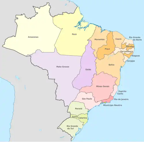 Após a proclamação da república, em 1889, as províncias imperiais passariam a ser intituladas como estados.