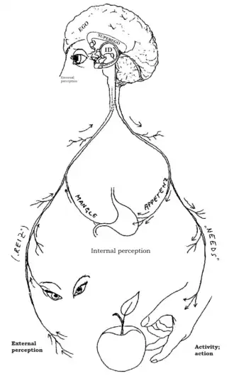 - ↑ Freud, Sigmund. 1955 [1923]. "The Ego and the Id." In Standard Edition 19, edited by J. Strachey. London: Hogarth Press. Lay summaries via Simply Psychology and JSTOR Daily Roundtable. Glossary via University of Notre Dame.