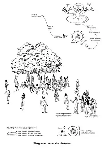 A vida em horda e sua abolição por meio da introdução da monogamia (como um acordo político entre os filhos que assassinaram o antepassado poligâmico da horda) incorporam o núcleo evolutivo e cultural‑histórico da psicanálise. Esse aspecto é decisivo para O mal‑estar na civilização de Freud; dele deriva sua suposição do surgimento do complexo de Édipo na história humana. Isso levou à formulação de regras de comportamento, como a proibição do adultério e do incesto, inaugurando as culturas totêmicas. Todas as fases históricas subsequentes de convivência nas sociedades têm suas raízes nisso, desde o feudalismo até as nações modernas, com seu monoteísmo que centraliza a diversidade totêmica, bem como as organizações militares, políticas e comerciais (ver Psicologia de Grupo e a Análise do Ego).