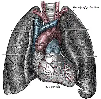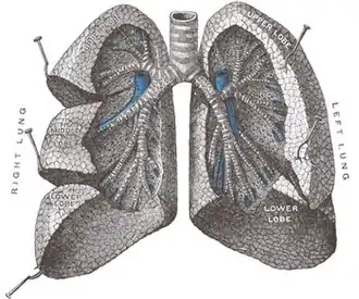 ![]() Vista frontal dos pulmões (cortados) | |