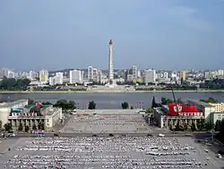 - ↑ «Main Buildings». Kim Il-Sung University. Consultado em 20 de abril de 2015. Arquivado do original em 3 de julho de 2015