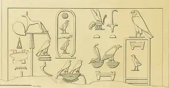 - ↑ Rainer Hannig: Die Sprache der Pharaonen. Großes Handwörterbuch Ägyptisch-Deutsch. (= Kulturgeschichte der antiken Welt. Vol. 64) 4ª edição, von Zabern, Mainz 2006, ISBN 3-8053-1771-9, página 113.