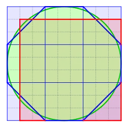 A área aproximada do círculo tem o valor ou . Comparando isto com uma determinação presentemente possível da área , verifica-se[62]