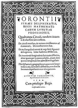 - ↑ F. Rudio: § 8. Die Zeit der Renaissance. Archimedes, Huygens, Lambert, Legendre. Vier Abhandlungen über die Kreismessung. 1892, pp. 27–28 (ver no Archive.org)