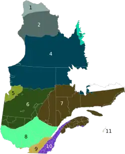 - ↑ «Portraits forestiers régionaux» (em francês). Conseil de l'industrie forestière du Québec. Consultado em 23 de junho de 2011. Arquivado do original em 25 de janeiro de 2010
