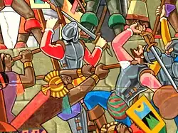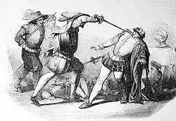 Gravura que representa Hernando Pizarro ferido, durante a luta contra os índios de Puná