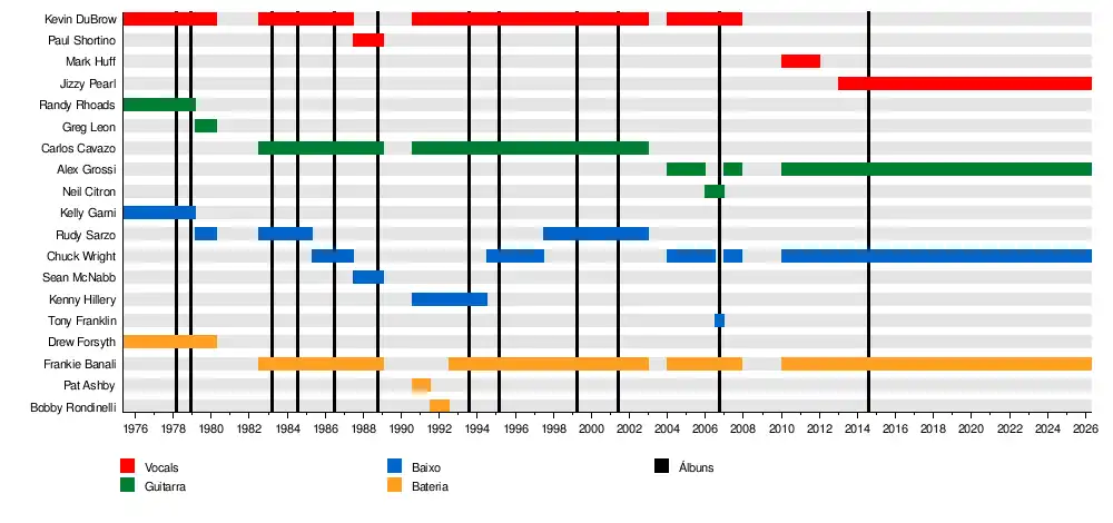 | Ex-integrantes | Frankie Banali Kevin DuBrow Randy Rhoads Carlos Cavazo Kelly Garni Drew Forsyth Paul Shortino Sean McNabb Mark Huff James Durbin Chuck Wright |