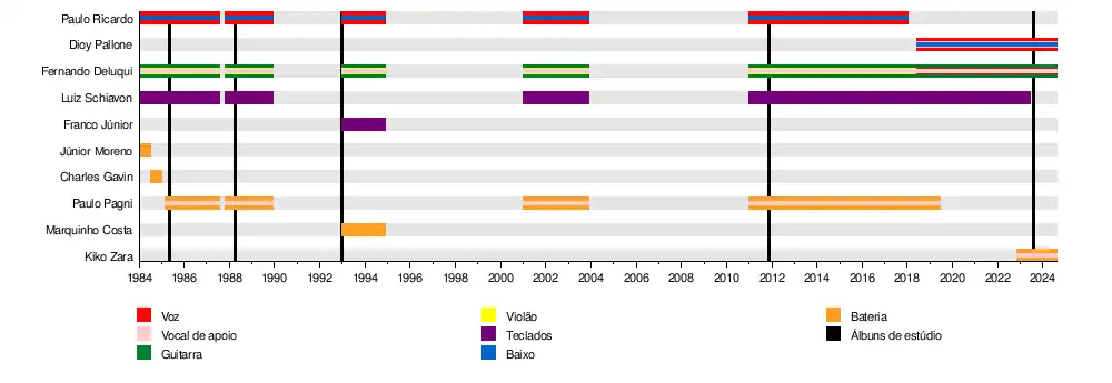 - Paulo Ricardo: voz principal, baixo (1984–1987, 1987–1989, 1993–1994, 2001–2003, 2011–2017)