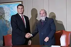 - ↑ «Ecuador swears in new Presidente». BBC News. 16 de janeiro de 2007. Consultado em 5 de outubro de 2014