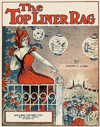 Scott Joplin alcançou fama por suas composições de ragtime e foi apelidado de “Rei do Ragtime” por seus contemporâneos. Seu “Maple Leaf Rag” é um dos rags mais famosos. ⓘ | |