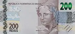 - ↑ «Nova nota de R$ 200 começa a circular a partir de hoje; veja como ela é». economia.uol.com.br. Consultado em 2 de setembro de 2020