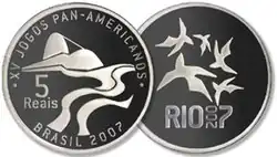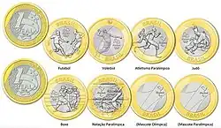 | Moedas | R$ 0,01 (inativa, com curso legal),[2] R$ 0,05, R$ 0,10, R$ 0,25, R$ 0,50, R$ 1,00 |