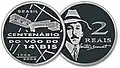 25 centavos | Metal: Aço revestido com bronze (borda serrilhada).[39] Reverso: Marechal Deodoro da Fonseca, 1º Presidente do Brasil, e Armas Nacionais da República Federativa do Brasil. |