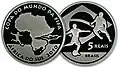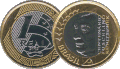 O anverso segue um padrão comum a todas as moedas, composto do valor e alegoria estilizada em alusão à Bandeira Nacional. Abaixo, em baixo relevo, é indicado o ano da cunhagem.