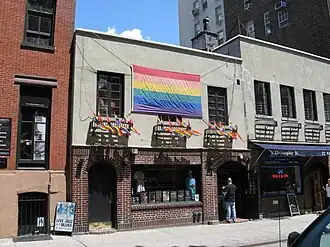 O Stonewall Inn, localizado entre os números 51 e 53 da rua Christopher, juntamente com vários outros estabelecimentos da cidade, era de propriedade da organização criminosa conhecida como Família Genovese.[49] Em 1966, três membros da máfia investiram 3.500 dólares para transformar o Stonewall Inn em um bar gay, depois de ter sido um restaurante e uma boate para heterossexuais. Uma vez por semana, um policial recebia envelopes de dinheiro como recompensa; o Stonewall Inn não tinha licença para vender bebida alcoólica.[50][51] Não havia água corrente no bar — os copos usados eram passados em banheiras cheias d'água e imediatamente reutilizados.[48] Não havia saídas de emergência e os banheiros inundavam constantemente.[52] Embora o bar não fosse usado para prostituição, vendas de medicamentos e outras "transações em dinheiro" ocorriam. Era o único bar para homens gays na cidade de Nova York onde a dança era permitida;[53] a dança era seu principal atrativo desde a sua reabertura como clube gay.[54]
