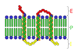 Os receptores transmembrana são proteínas que se estendem por toda a espessura da membrana plasmática da célula, com um extremo do receptor fora da célula (domínio extracelular) e outro extremo do receptor dentro (domínio intracelular). Quando o domínio extracelular reconhece a um hormônio, a totalidade do receptor sofre uma mudança em sua conformação estructural que afeta ao domínio intracelular, conferindo-lhe uma nova ação. Neste caso, o hormônio não atravessa a membrana plasmática para penetrar na célula.