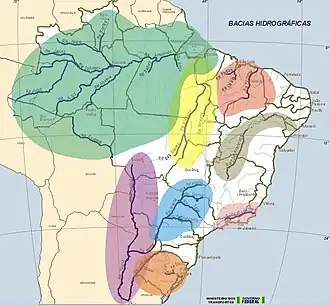 - Bacia Platina, subdividida em suas bacias hidrográficas: a bacia do rio Paraná e a bacia do rio Paraguai, no restante da região.