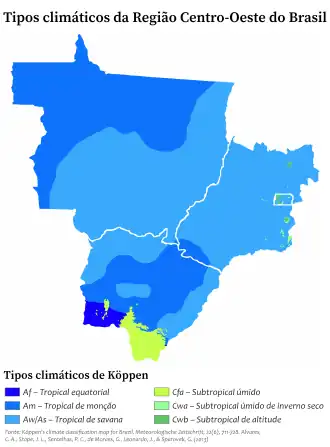 - ↑ Alvares, C. A., Stape, J. L., Sentelhas, P. C., de Moraes, G., Leonardo, J., & Sparovek, G. (2013). «Köppen's climate classification map for Brazil. Meteorologische Zeitschrift, 22(6), 711-728.». Consultado em 31 de março de 2014