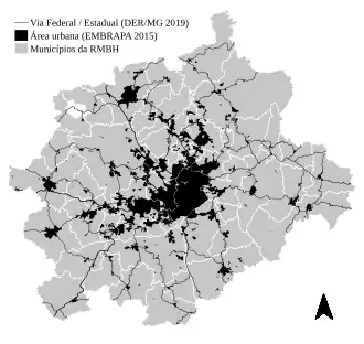 14. Renata Guimarães Vieira de Souza e Fausto Reynaldo Alves de Brito. «A Expansão Urbana da Região Metropolitana de Belo Horizonte e suas implicações para a redistribuição espacial da população: a migração dos ricos» (PDF). [Trinnity Consultoria]. Consultado em 14 de Março de 2015