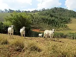 Sul de Minas Gerais: as reduzidas fazendas possibilitam a policultura, a suinocultura e a produção de gado de leite. A fábrica de laticínios é a maior nesta região. Poços de Caldas é o município mais populoso do sul mineiro.[89]