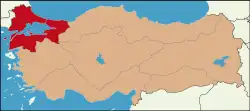 - ↑ «Região de Mármara» (em inglês). Getty Thesaurus of Geographic Names. Consultado em 16 de maio de 2020