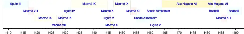 Ainda desencadeou um contra-ataque entre 1433 e 1440, recuperando praças de Castela, mas a partir daqui a história de Granada foi de defesa contra Castela, bloqueios econômicos, tréguas e devolução de cativos, até a "guerra de Granada", uma série de campanhas militares entre 1482 e 1492 que culminariam a 2 de Janeiro de 1492, com a rendição negociada mediante capitulação do rei Maomé XII, conhecido entre os espanhóis como Boabdil.
