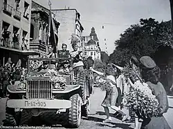 Entretanto, a capital Sófia foi bombardeada por aviões aliados em 1941[37] até 1944.[38] Mas era o Exército Vermelho que avançava rapidamente em direção à Bulgária. Em Agosto de 1944, a Bulgária anunciou unilateralmente a sua retirada da guerra[39] e pediu às tropas alemãs que saíssem: as tropas búlgaras foram retiradas apressadamente da Grécia e da Jugoslávia. Em setembro, os soviéticos cruzaram a fronteira norte. O governo, desesperado por evitar uma ocupação soviética, declarou guerra à Alemanha, mas os soviéticos não se deixaram abater e, em 8 de setembro, declararam guerra à Bulgária – que assim se viu durante alguns dias em guerra com a Alemanha e a União Soviética.[40] A União Soviética ocupou a parte nordeste da Bulgária, juntamente com as principais cidades portuárias de Varna e Burgas, no dia seguinte. Por ordem do governo, o exército búlgaro não ofereceu resistência.[41][42][43] Em 16 de setembro, o Exército Vermelho entrou em Sófia.[44] No mesmo dia, um governo pró-Eixo no exílio foi estabelecido em Viena sob Aleksandar Tsankov e, embora tenha conseguido reunir um regimento SS búlgaro de 600 homens, formado por voluntários anticomunistas búlgaros, já na Alemanha sob um comandante alemão, teve pouco sucesso.[45][46][47]