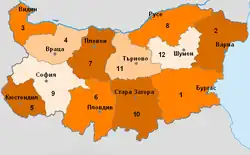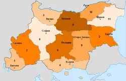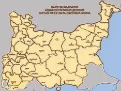 ![]() Divisões administrativas do Czarado da Bulgária em 1942 | |||||||||||||||||||||||||||||||||||||||||||||