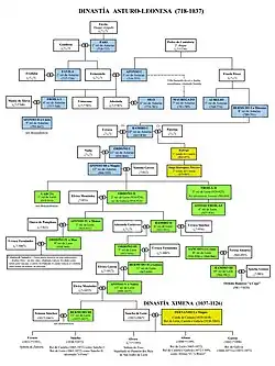 Reis das Astúrias em azul, da dinastia asturo-leonesa.