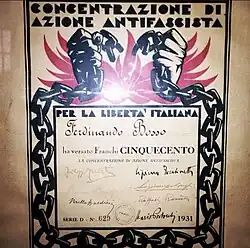 - ↑ Bruscino, Felicia (25 de novembro de 2017). «Il Popolo del 1925 col manifesto antifascista: ritrovata l'unica copia». Ultima Voce (em italiano). Consultado em 23 de março de 2022