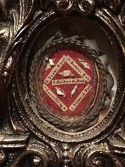 - Relíquias São Francisco Assis, Santo António Lisboa e Padua, Santo André Apostolo, Santo Francisco Xavier e Santo Januario (Ex Ossibus com carta e selo ecclesiastico) - Óratorio Privado com carta de aprovação, Seixal (Distrito Setubal, Portugal) - (em exposição pública).