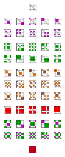 - Dada uma partição de A, G é um grupo de transformação em composição, cujas órbitas são as células da partição;[11]
