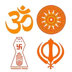 As religiões indianas, às vezes também denominadas religiões dármicas ou religiões índicas, são as religiões que se originaram no subcontinente indiano. Essas religiões, que incluem hinduísmo, jainismo, budismo e siquismo,[1] também são classificadas como religiões orientais. Embora as religiões indianas estejam conectadas ao longo da história da Índia, elas constituem uma ampla gama de comunidades religiosas e não estão confinadas ao subcontinente indiano.[1]
