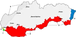 - ↑ Innenministerium der Slowakischen Republik. «Stručný prehľad vývoja územného a správneho členenia Slovenska» (em eslovaco). p. 42–43. Consultado em 19 de agosto de 2021