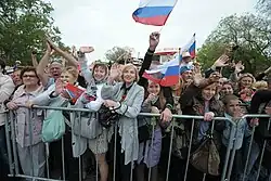 Em 16 de março de 2014, de acordo com declarações dos organizadores do referendo da Crimeia, uma grande maioria (relatada como 96,77% dos 81,36% da população da Crimeia que participou do pleito) votou a favor da independência da Crimeia da Ucrânia e pela anexação à Rússia.[9][10] O referendo não foi reconhecido pela maioria da comunidade internacional e os resultados relatados foram contestados por vários observadores independentes. A BBC informou que a maioria dos tártaros da Crimeia que eles entrevistaram boicotaram a votação.[9] Relatos da ONU criticaram as circunstâncias em torno do referendo, especialmente a presença de paramilitares, grupos de autodefesa e soldados sem identificação.[11] A União Europeia, o Canadá, o Japão e os Estados Unidos condenaram a votação como ilegal.[9][12] A Resolução 68/262 da Assembleia Geral das Nações Unidas considerou o referendo ilegal, sendo então a Crimeia classificada como um território ucraniano sob ocupação russa.