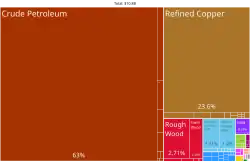 Principais produtos de exportação da República do Congo em 2019 (em inglês).