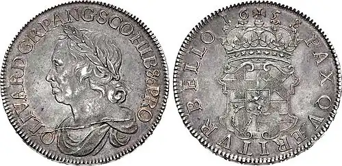 Moeda de 1658, ano da morte de Oliver Cromwell