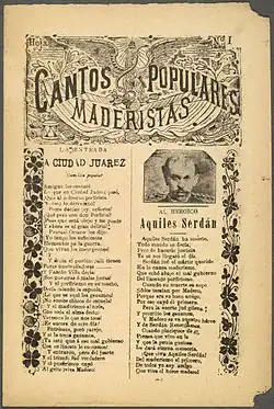 Aquiles Serdán, um político mexicano que fugira para os Estados Unidos depois das eleições, recebeu de Madero a incumbência de organizar a revolução em Puebla, donde era originário. Em 18 de novembro, um grupo de polícias acorreu ao seu domicílio, onde eram guardadas as armas. Aquiles resistiu junto aos seus irmãos, sendo rodeados por 400 soldados e 100 polícias. Por fim foram assassinados na cave da vivenda.[51]