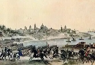 As cidades de Buenos Aires e Montevidéu foram bem-sucedidas em resistir a duas invasões britânicas.[13] A primeira foi em 1806, quando um pequeno exército liderado por William Carr Beresford tomou Buenos Aires por um breve período até ser derrotado por uma força comandada por Santiago de Liniers. Um exército maior conquistou Montevidéu no ano seguinte, porém foram subjugados pelas forças de Buenos Aires; os britânicos capitularam e entregaram a cidade.[26] A Espanha não enviou auxílio em ambas as invasões.[18][27] Liniers organizou milícias crioulas durante as preparações para a segunda invasão, mesmo existindo proibições contra suas existências nas colônias.[28][29][30] O 1º Regimento de Infantaria "Os Patrícios" liderado por Cornelio Saavedra era o maior dos exércitos crioulos. Esses eventos deram aos crioulos poder militar e influência política que nunca tinham possuído antes e, já que suas vitórias foram realizadas sem qualquer tipo de ajuda vinda espanhola, aumentou sua confiança de que possuíam a capacidade para alcançar a independência.[18][31]