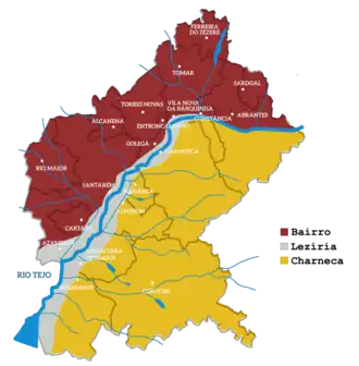 - A Lezíria compreende a área de planície inundável pelo rio Tejo e terrenos adjacentes, e inclui solos de aluvião, de ótima qualidade, nos quais a vinha ostenta todo o seu vigor. Nestas terras fertilíssimas para além da vinha encontram-se plantações de cereais, melão, tomate e excelentes pastagens para gado bovino e equino.