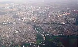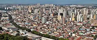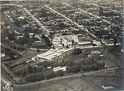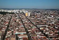 Na primeira metade do século XX, Ribeirão Preto continuou atraindo imigrantes nacionais e internacionais. Um novo grupo de destaque são os japoneses, sendo o município, considerado "berço da imigração japonesa" por receber uma parte dos primeiros imigrantes que chegaram ao Brasil em 1908.[50] Também é expressiva a chegada de árabes, especialmente sírio-libaneses. O município também atraiu durante esse século pessoas de todo o estado de São Paulo e de todo o Brasil, sendo os mais numerosos, de acordo com o censo 2000, os mineiros, paranaenses e baianos.[43] Esse aumento da população foi acompanhado da expansão do tecido urbano para além do núcleo original. Um dos bairros mais antigos da cidade surgiu em 1893, com o loteamento do Núcleo Colonial Antônio Prado. O bairro Barracão surgiu nas imediações da estação ferroviária de mesmo nome, a principal estação no qual chegavam os imigrantes que iriam trabalhar na lavoura cafeeira. Com o adensamento populacional o bairro se subdividiu, mantendo a linha férrea da Mogiana como marco fronteiriço no qual surgiram o Barracão de Baixo, atual Campos Elísios, e o Barracão de Cima, onde atualmente localiza-se o Aeroporto Estadual Dr. Lopes. Por ser um pouco afastado do centro, esse bairro carecia de infraestrutura urbana, chegando a níveis alarmantes nos primeiros anos do século XX. As transformações, embelezamentos e modernização urbana ficaram por muito tempo restritas ao centro da cidade. Recursos implantados no centro como rede de água (1898), esgoto (1900) e energia elétrica (1899) não chegaram com a mesma velocidade nas áreas mais afastadas, ocorrendo somente nas décadas de 1910 e 1920, após seguidas reivindicações da população.[47] Outro bairro surgido no fim do século XIX é a Vila Tibério, embora seu adensamento populacional tenha se dado nas primeiras décadas do século XX. Localizada no atual centro urbano de Ribeirão Preto, próximo da Catedral Metropolitana, o bairro teve seus primeiros arruamentos planejados a partir do fracionamento da Fazenda Monte Alegre em 1880. Por ser mais acessível à classe trabalhadora da época, sua população inicial se dividia entre os imigrantes italianos que trabalhavam nessa fazenda e funcionários das primeiras indústrias instaladas nas imediações do centro. Embora próximo, o bairro era inicialmente isolado da cidade pelo "muro de ferro" dos trilhos da Mogiana e tinha apenas um acesso pela rua Luiz da Cunha.[51]