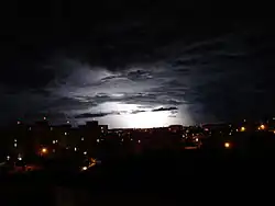 O clima de Ribeirão Preto é caracterizado tropical semiúmido, do tipo Aw na classificação climática de Köppen-Geiger, com verões quentes e chuvosos e invernos secos[77] com temperaturas mais amenas, havendo por vezes episódios de frio intenso, com mínimas abaixo dos 5 °C.[78] As precipitações ocorrem sob a forma de chuva e, em algumas ocasiões, de granizo,[79] podendo virem acompanhadas de raios e trovoadas, e serem de forte intensidade.[80] Também podem ocorrer alguns episódios de forte ventania, com rajadas chegando a ultrapassar 100 km/h.[81][82] Na estação seca, os índices de umidade do ar despencam, podendo cair para abaixo de 30% ou mesmo dos 20%, muito abaixo dos 60% ideais estabelecidos pela Organização Mundial da Saúde (OMS).[83]